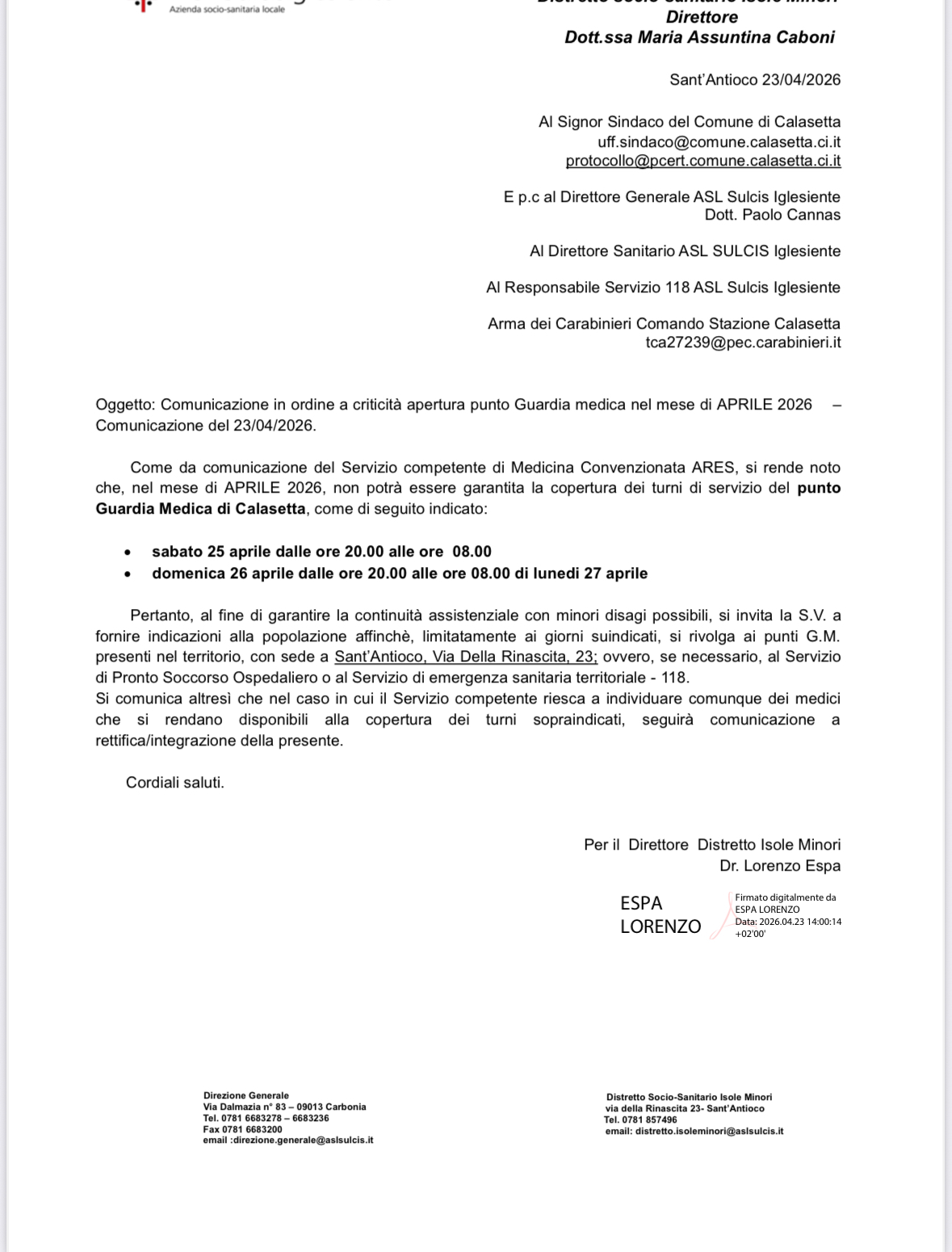 Guardia medica chiusa domenica 5 aprile dalle ore 8:00 alle ore 8:00 di lunedì 6 aprile - chiusa da lunedì 6 aprile dalle ore 20.00 alle ore 08:00 di martedì 7 aprile