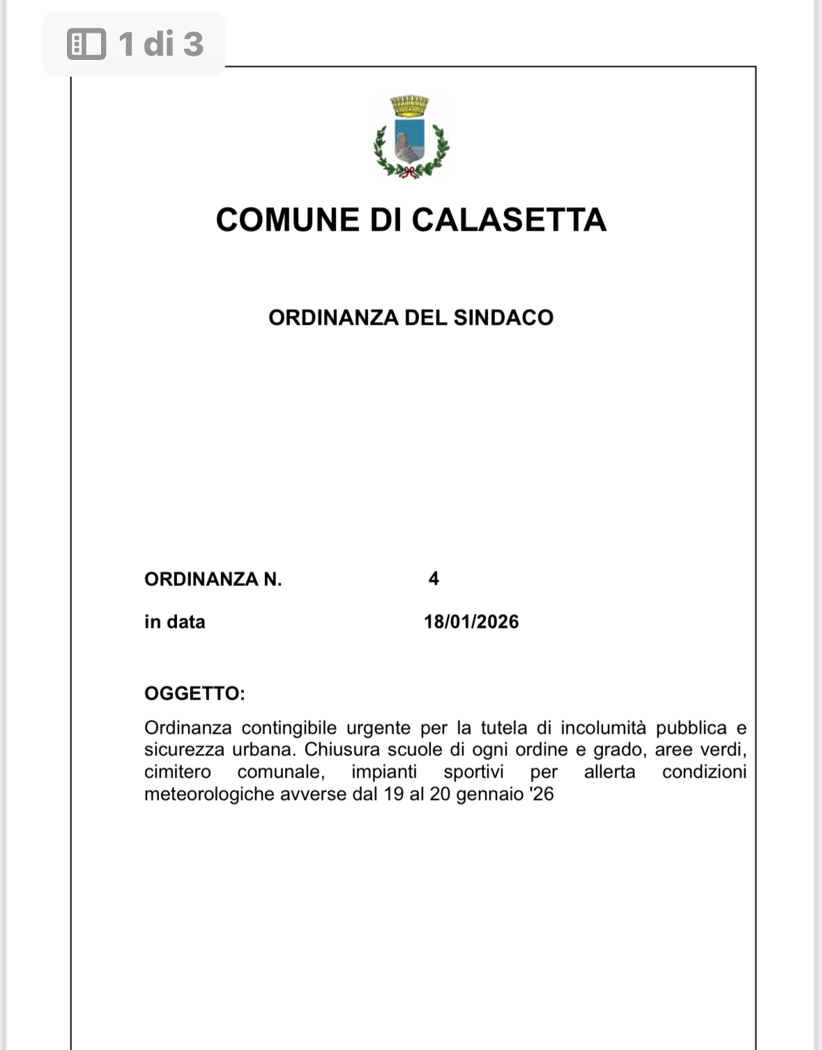 Ordinanza sindacale 19 gennaio 2026 20 gennaio 2026