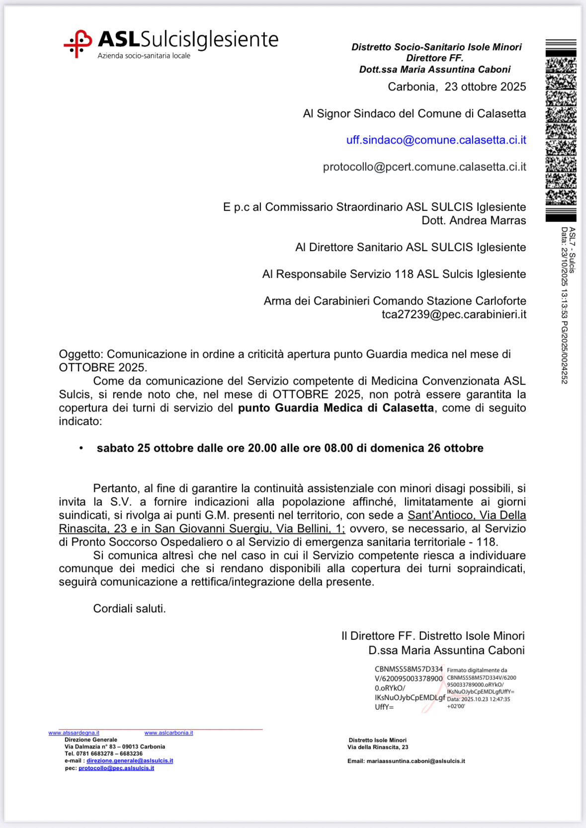Guardia medica chiusa sabato 25 Ottobre 2025
