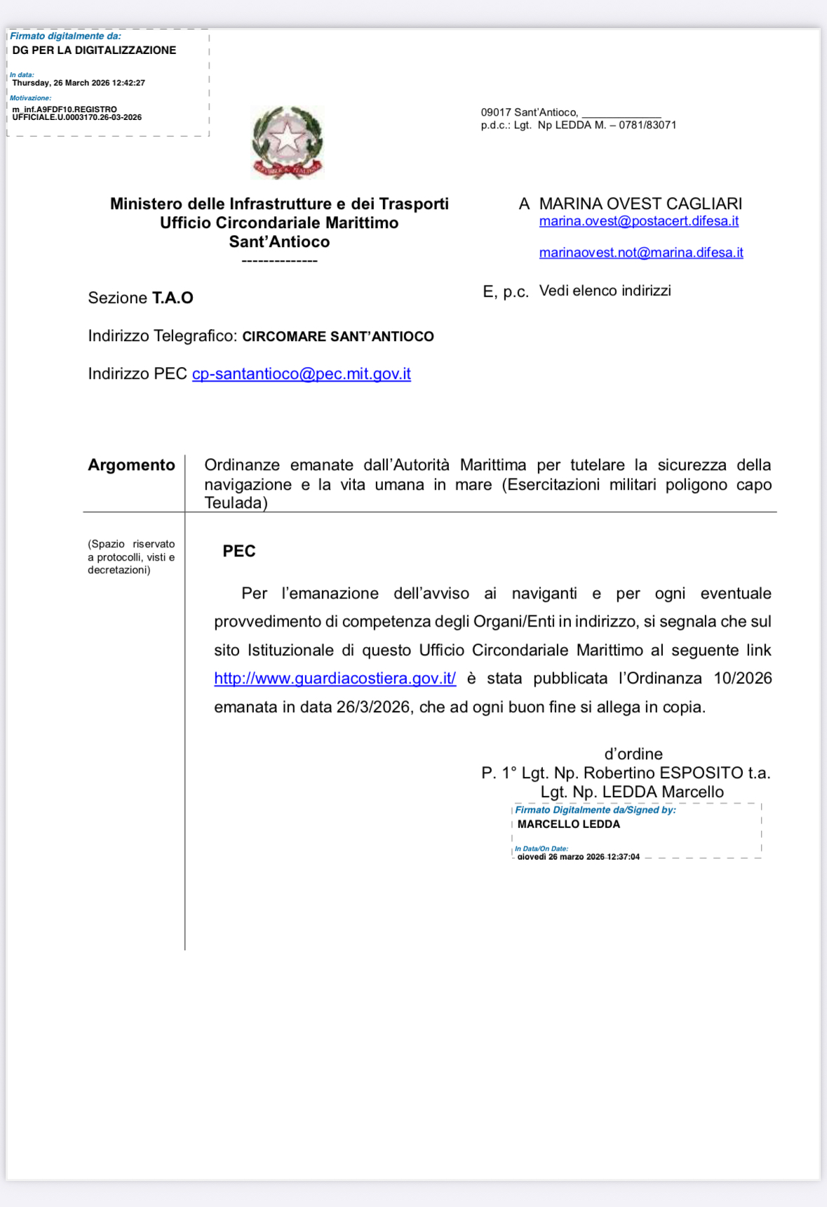ORDINANZA AUTORITÀ marittima