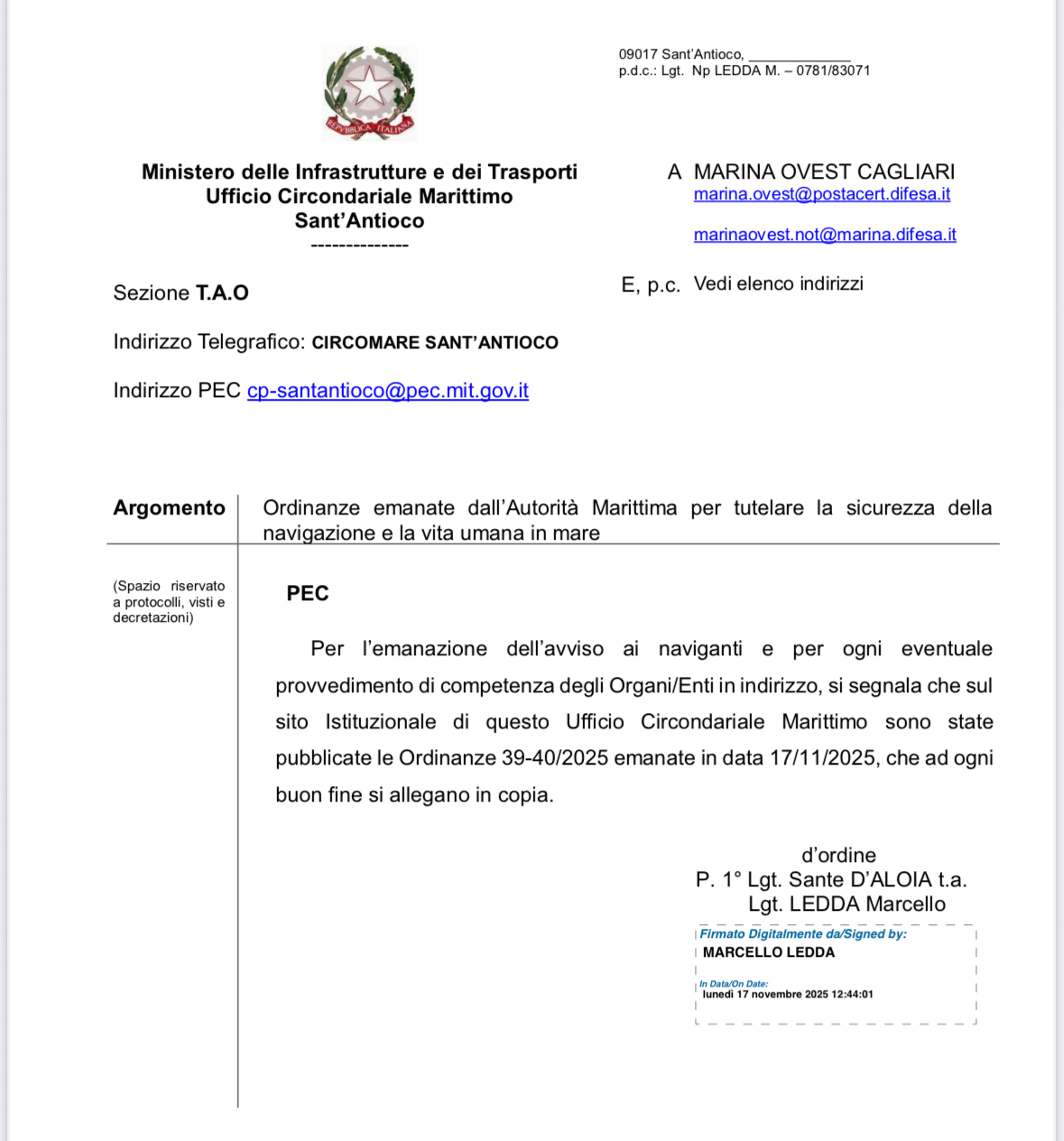 Ordinanze emanate dall autorità marittima per tutelare la sicurezza della navigazione e la vita umana in mare